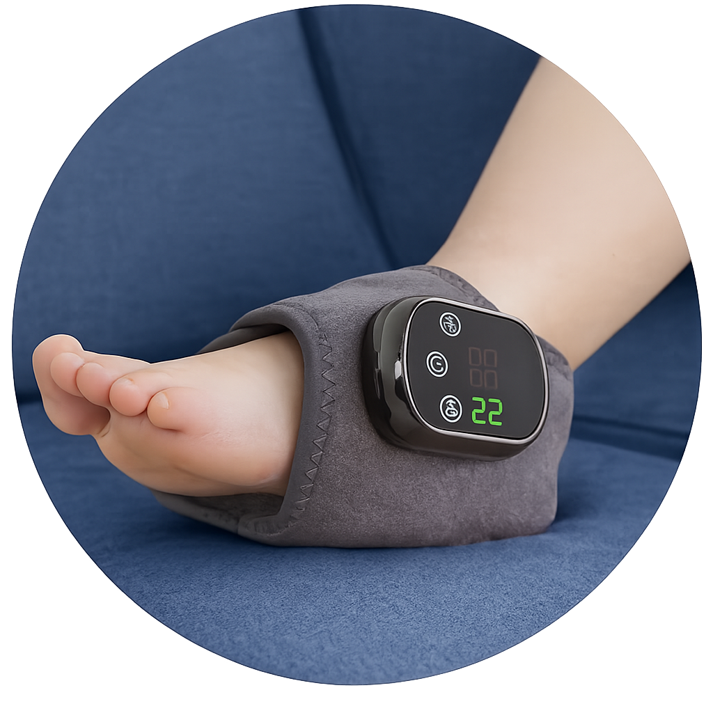 TheraPie combina terapia de compresión ,calor y masaje por vibración para calmar y recuperar tus pies suavemente, mejorando la circulación y liberando la tensión muscular.