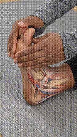 Coloca el TheraPie alrededor del pie usando la correa de velcro ajustable.